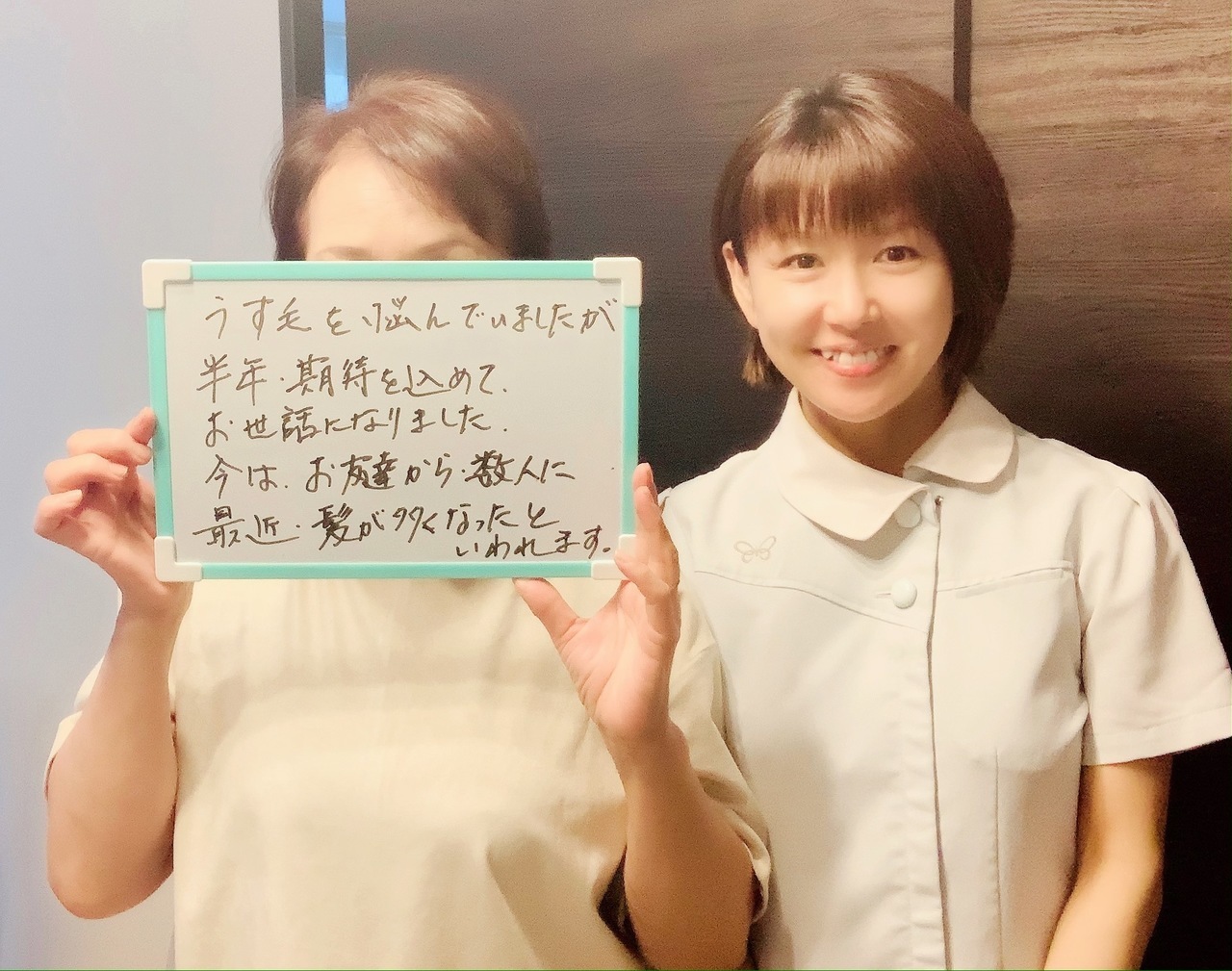 薄毛や毛の細さに悩んでいましたが、半年間期待を込めてお世話になりました。今は、お友達数人に『最近毛が多くなった』と言われます。